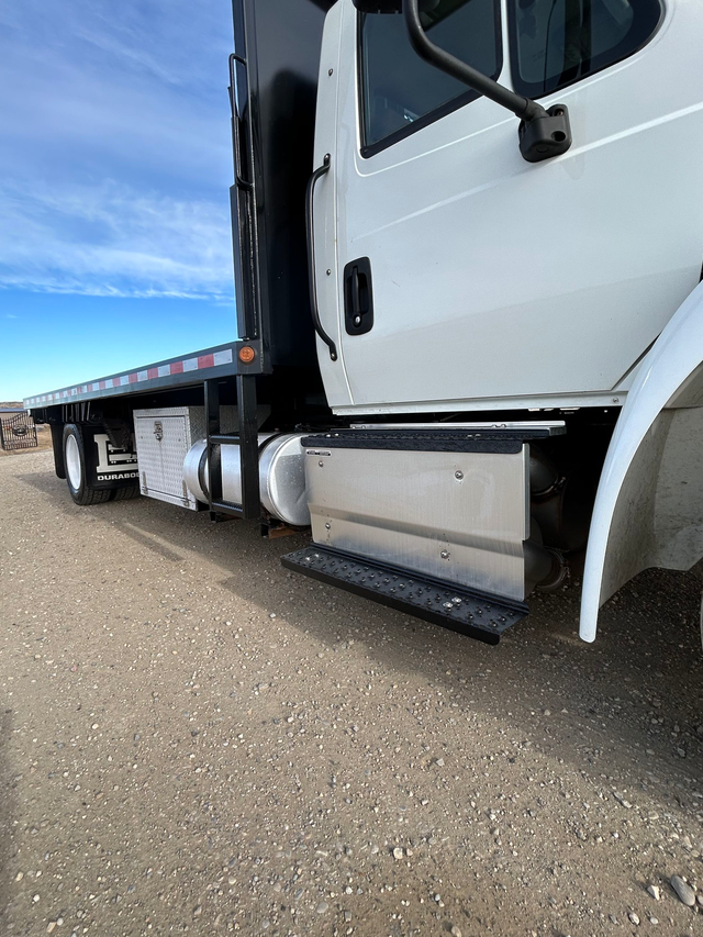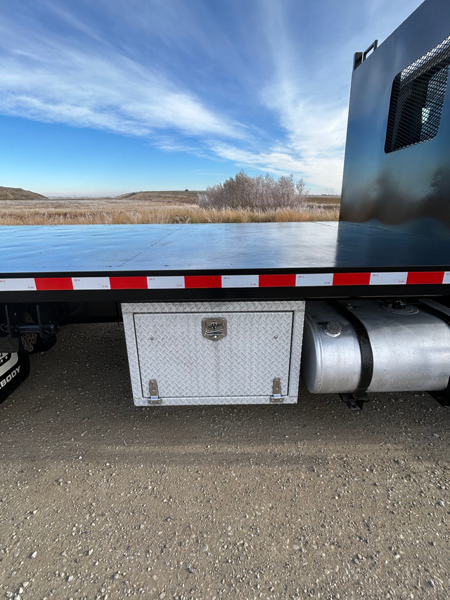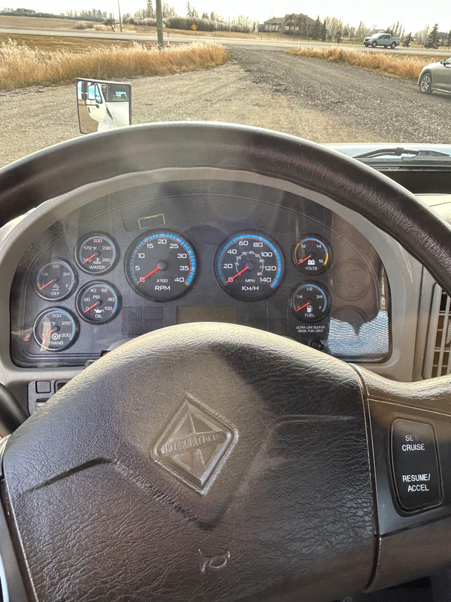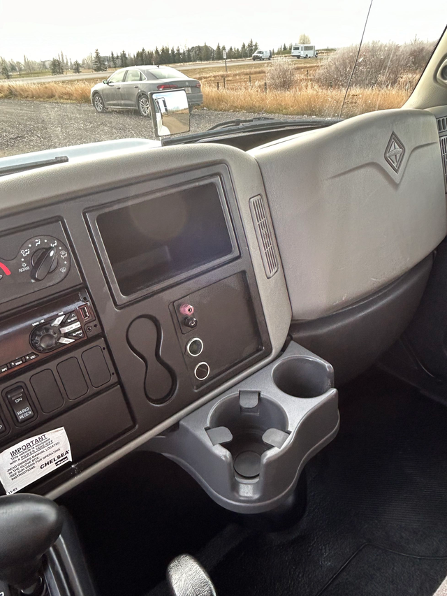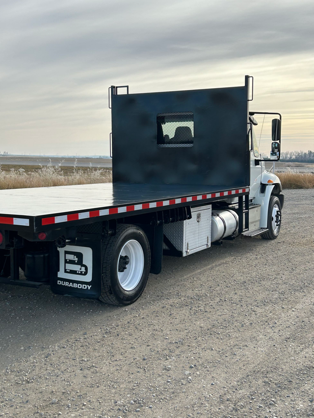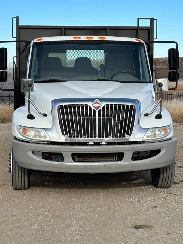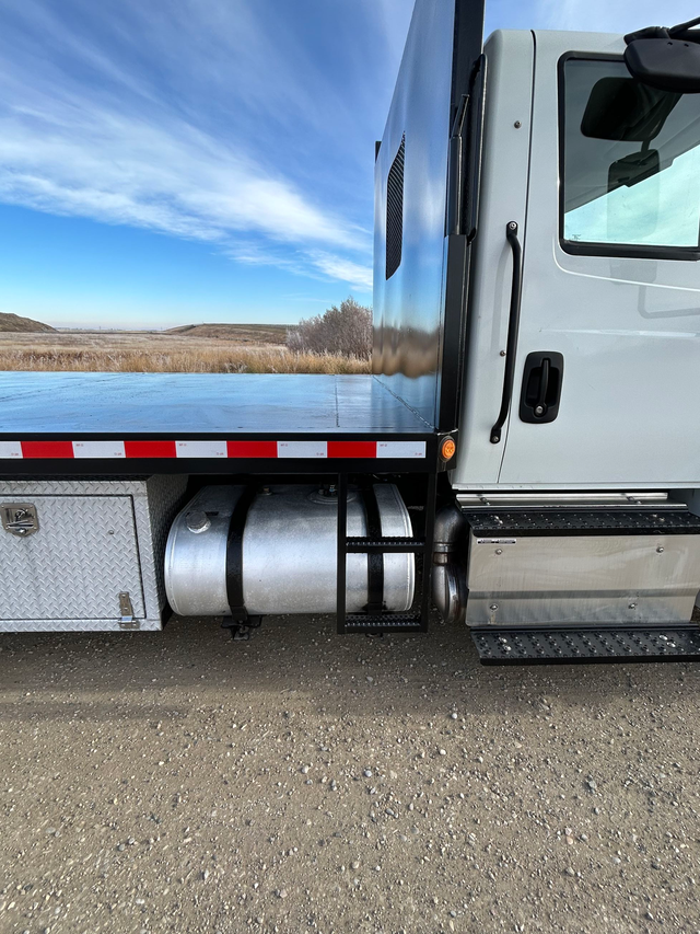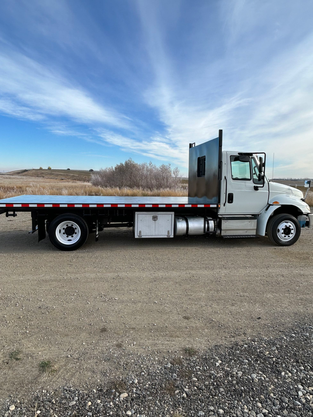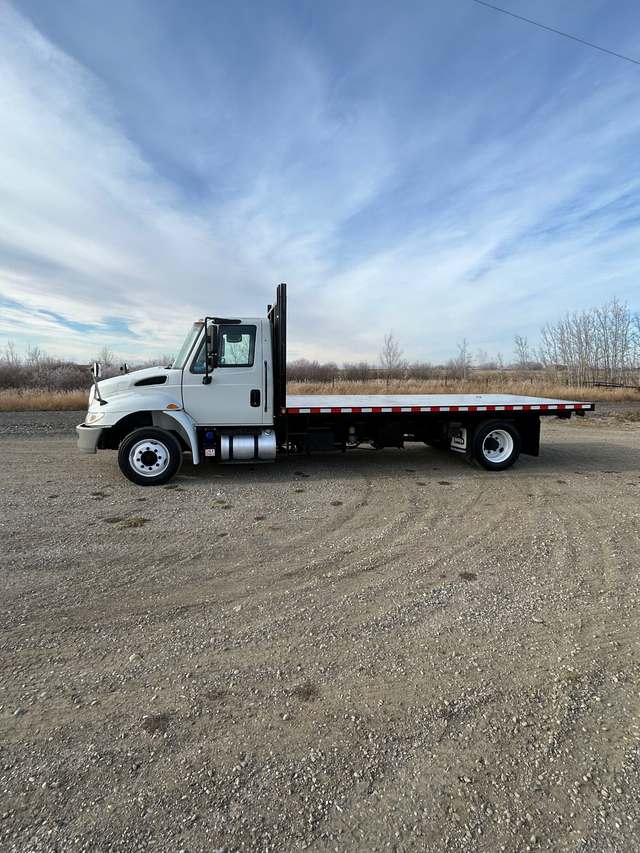 2017 International 4600 with Cummins engine and tilt deck. Located in Rocky View, Alberta.